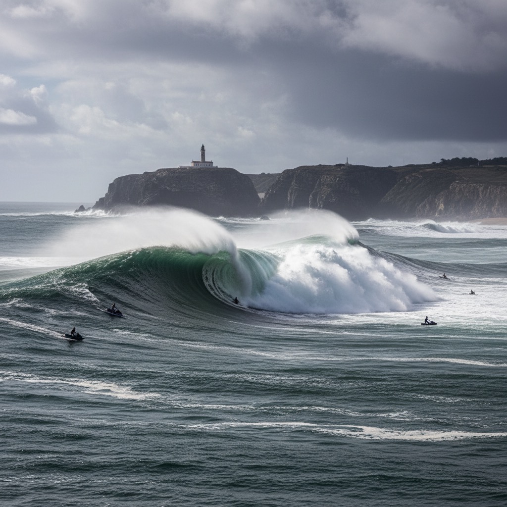 Der Swell hat Freitag aufgebaut, über Nacht peaked und gestern abgeebbt – perfekt clean mit Nordost-Wind. Von Rupp nennt es den besten seit 2022: “Giant, giant waves!” Öffentlich zugänglich am Forte de São Miguel Arcanjo, Livestream auf WSL-YouTube. (Siehe unten)